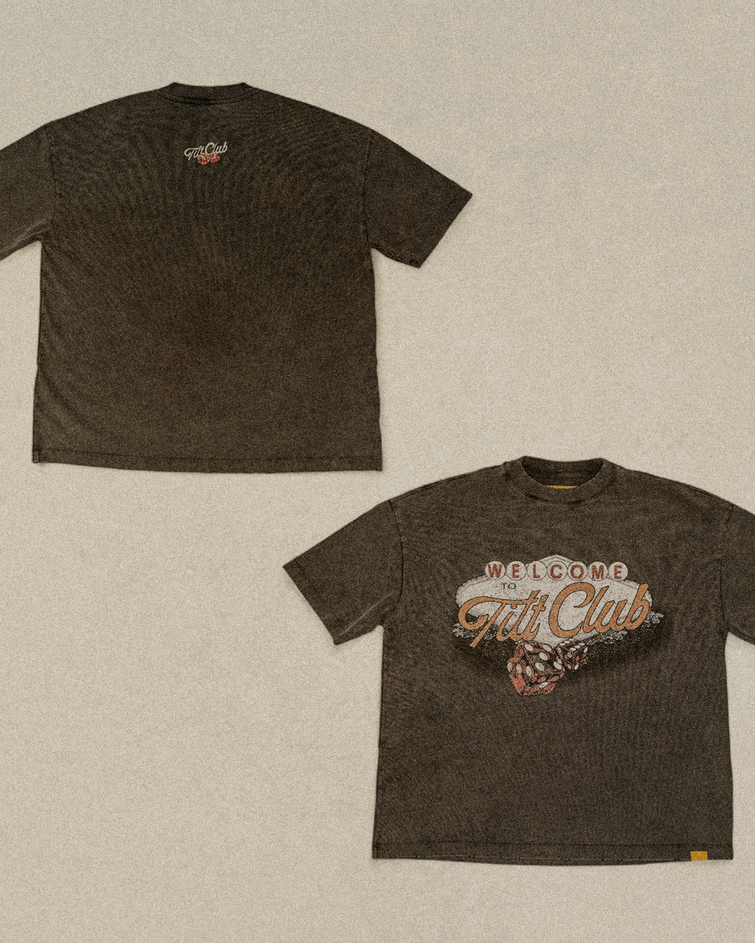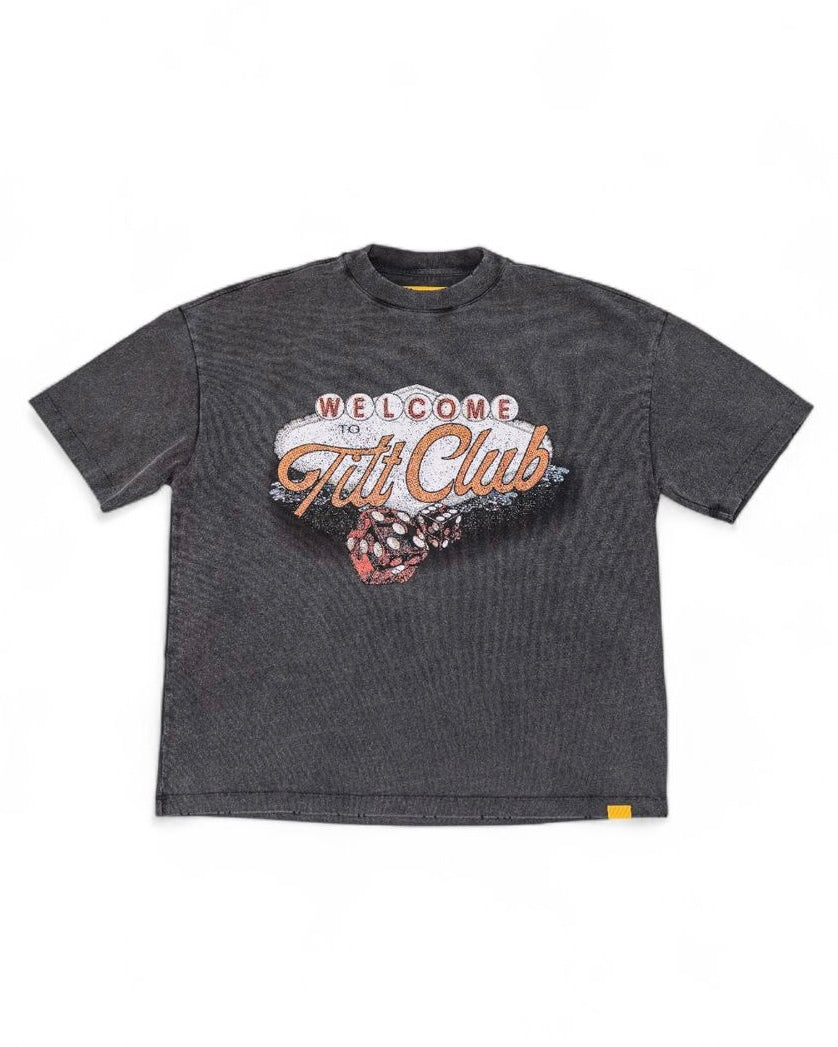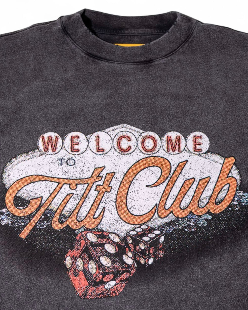 A statement piece that stays true to gambling’s Sin City roots. Men’s stonewash t-shirt with Welcome to Tilt Club graphic printed on front and Tilt Club graphic below collar on back.